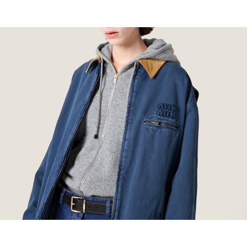 미우미우 코듀로이 칼라 개버딘 트럭커 자켓
