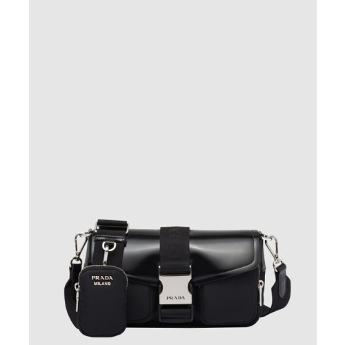 나일론 및 브러시드 가죽 숄더백 1BD295